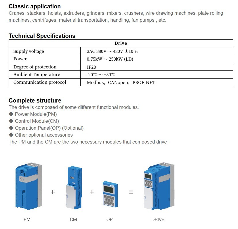 PM25+CM23+OP25:B1(0.75 kW~3 kW),B2(4 kW~7.5kW),B3(11 kW~15kW),B4(18.5 kW~37kW),B6(45 kW~132kW),B7(160kW ~ 250kW)