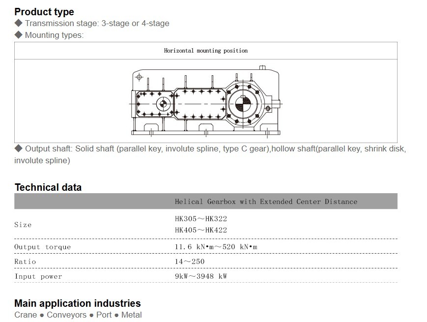 ◆ Extended center distance gearbox with unique concept designed for cranes.