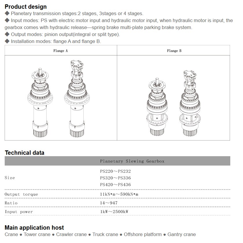 ◆ Two flange mounting types: mounting flange has eccentric adjustment function(adjust the backlash between pinion and slewing ring).