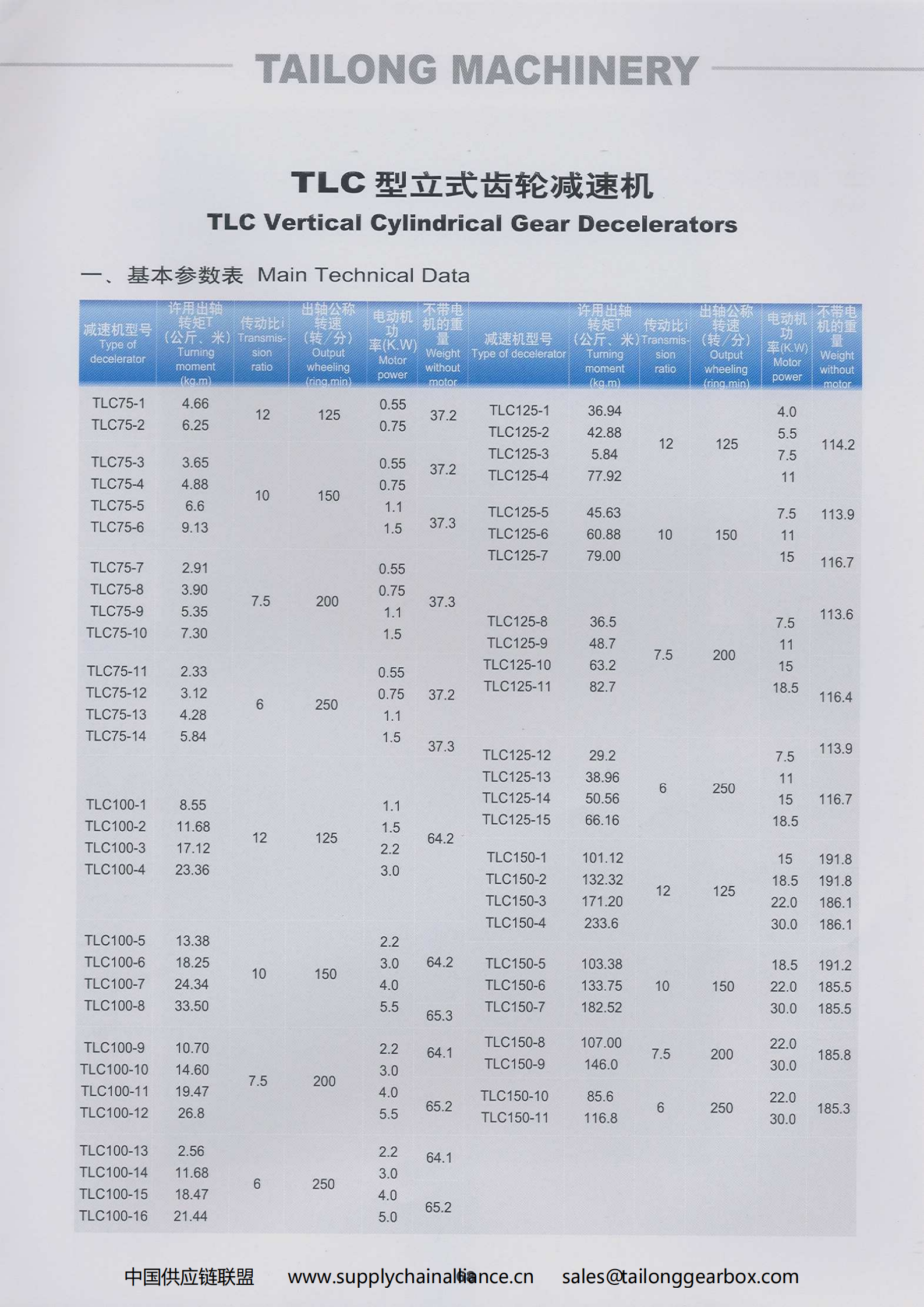 TLC type vertical gear reducer electronic catalog