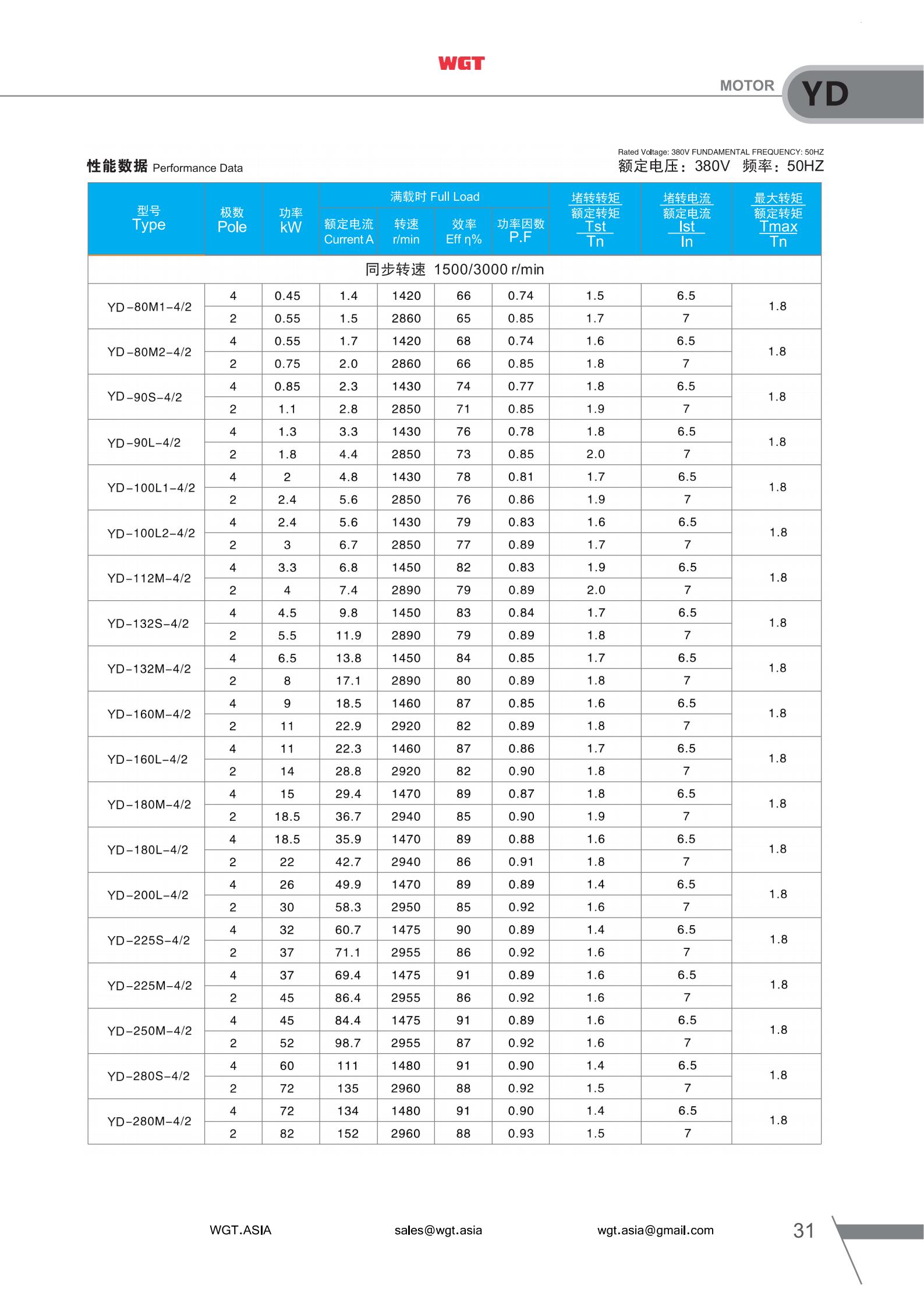 YD-160L-4/2,YD-180M-4/2,YD-180L-4/2,YD-200L-4/2,YD-225S-4/2,YD-225M-4/2,YD-250M-4/2,YD-280S-4/2,YD-280M-4/2,YD-90S-6/4