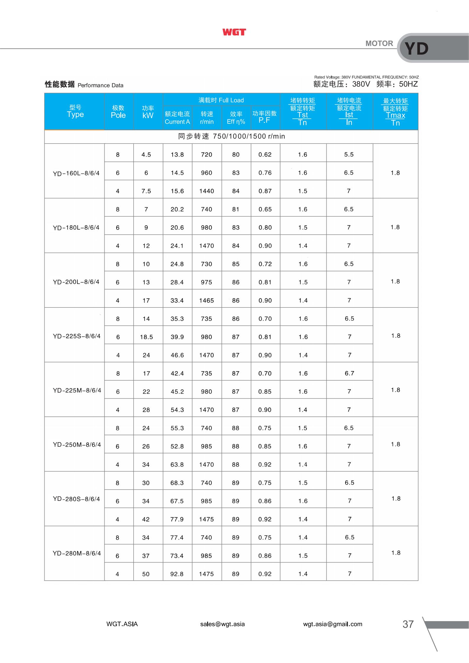 YD-280S-8/4,YD-280M-8/4,YD-90S-8/6,YD-90L-8/6,YD-100L-8/6,YD-112M-8/6,YD-132S-8/6,YD-132M-8/6,YD-160M-8/6,YD-160L-8/6