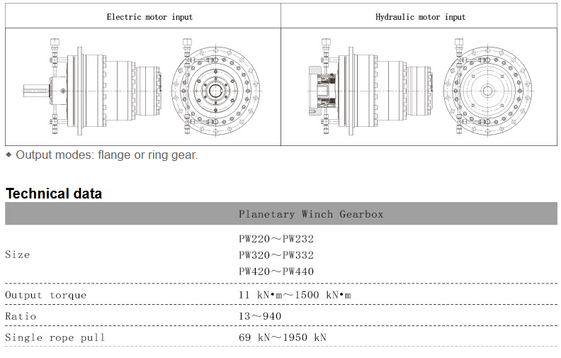 PW planetary concealed winch gear box is the ideal driving device of winch mechanism. Compact structure, can be directly installed inside the drum, saving space, especially in the case of small space, it is a more economical solution. Proven quality and performance in demanding working conditions and environments.